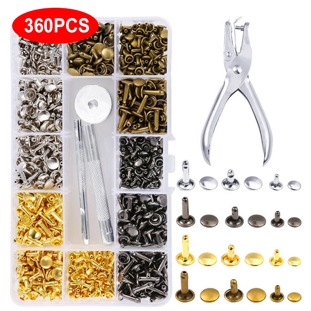 360Pcs Metal Double Cap Rivets Studs Round Rivet for DIY Leather Craft Bag Belt Clothing Shoes Pet Collar Fixing Tools