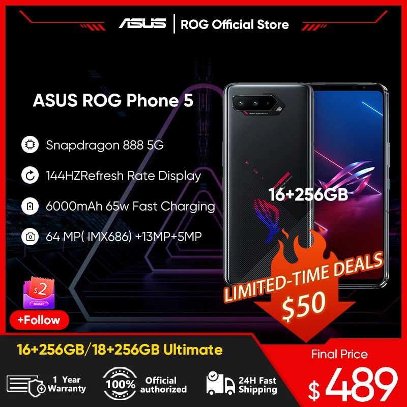 ASUS ROG Phone 5 5G Smartphone Snapdragon 888 6.78» 144Hz AMOLED 6000mAh 65W Fast charging Gaming Phone NFC Global ROM