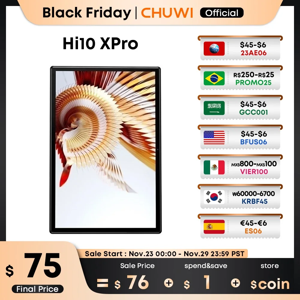 CHUWI Hi10X Pro 10.1 Inch 800*1280 IPS Screen Unisoc T606 4GB RAM 128GB ROM Tablets 2.4G/5G Wifi Android 13 Tablet PC 7000mah