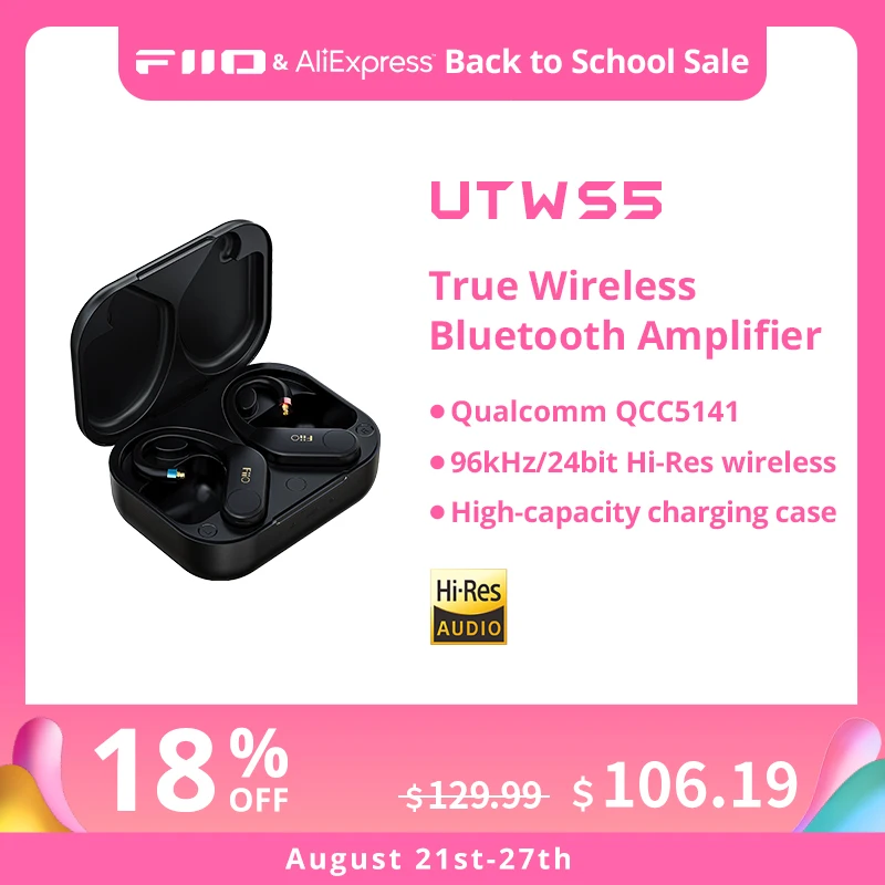 FiiO UTWS5 True Wireless Bluetooth 5.2 Amplifier aptX MMCX/0.78mm Connector with 30 Hours Wireless Charging Case
