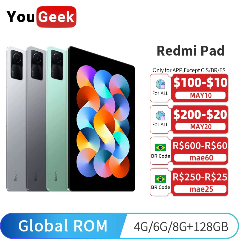 Global ROM Xiaomi Redmi Pad 4GB / 6GB 128GB MTK Helio G99 Mi Tablet 90Hz 10.6″ 2K Screen 8000mAh 18W Fast Charging 8MP Camera