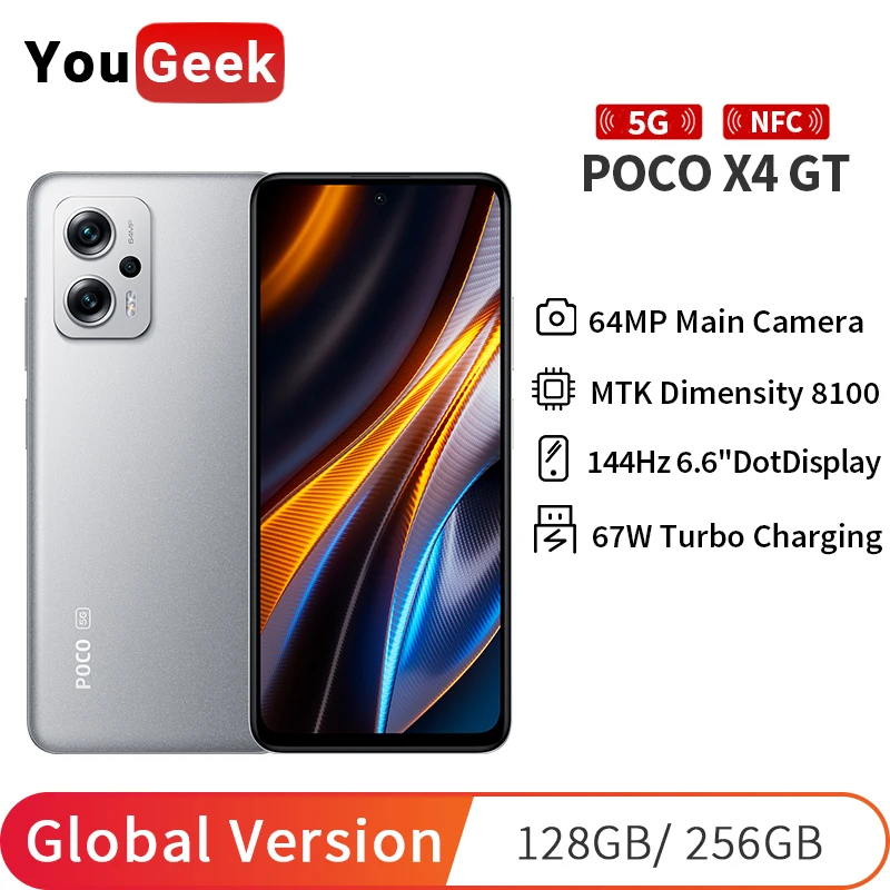 Global Version POCO X4 GT 5G Cellphone 128GB/256GB Dimensity 8100 NFC 144Hz 6.6″ DotDisplay 64MP Triple Camera 67W Fast Charging