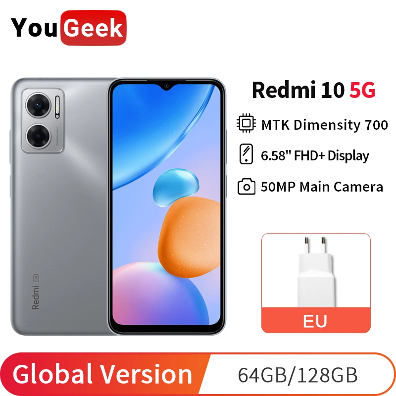 Global Version Xiaomi Redmi 10 5G Cellphone 64GB/128GB 6.58″ 90Hz Display Dimensity 700 Octa Core 18W Fast Charge 50MP Camera