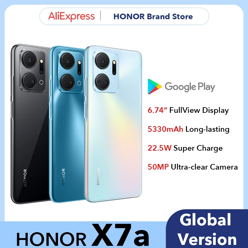 HONOR X7a Smartphone 6.74-inch 5330mAh 128GB Android 12 Mobile Phones 22.5W Supercharge Telephone 50MP Quad Camera 4G Cell Phone