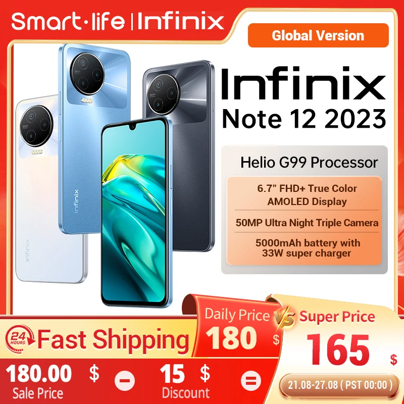 Infinix Note 12 2023 4G NFC 8/128GB Helio G99 6nm Processor 6.7 FHD+ AMOLED Display Mobile Phone