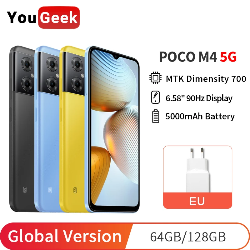 New POCO M4 5G 64GB/128GB Global Version Dimensity 700 Octa Core NFC 6.58″ 90Hz DotDrop Display 5000mAh Battery Mobile Phone