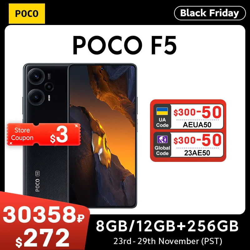 POCO F5 Global Version 8GB 256GB / 12GB 256GB NFC6.67» 120Hz Flow AMOLED DotDisplay Snapdragon 7+ Gen 2 Octa Core 64MP Camer 5G