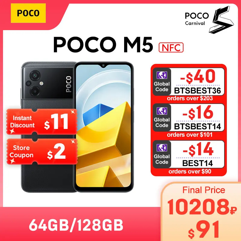 POCO M5 Global Version 64GB / 128GB MTK G99 Octa Core 90Hz 50MP Camera 5000mAh Battery 6.58″ DotDrop display NFC