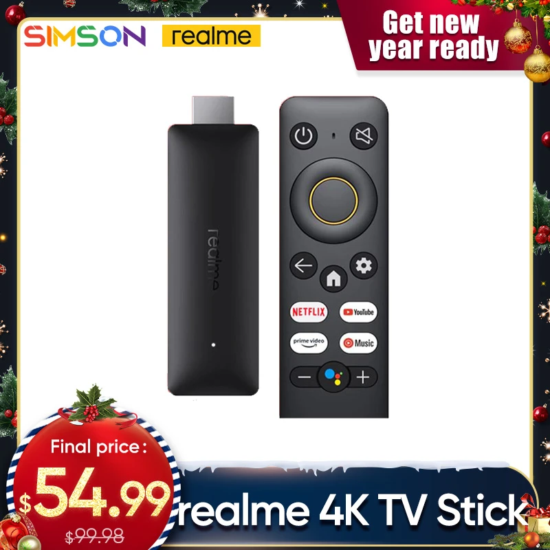 realme 4K Smart Google TV Stick 4Kp60 HDR10+ HDMI 2.1 2GB RAM 8GB ROM Chromecast Built-in Assistant Bluetooth 5.0 Global Version