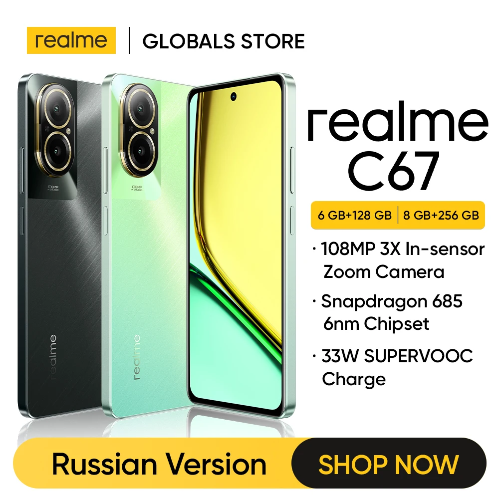 realme C67 108MP AI Camera Snapdragon 685 Processor 6,72» 90Hz Display 5000mAh Battery 33W SUPERVOOC Charge NFC 128GB/256GB