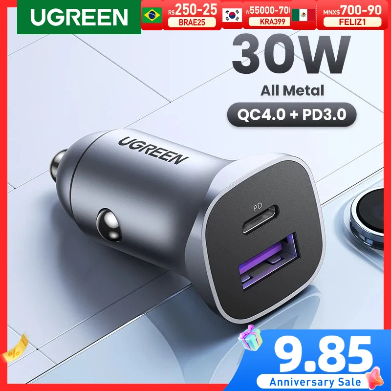 UGREEN Car Charger Type C Fast USB Charger for iPhone 15 14 13 Xiaomi Car Charging Quick 4.0 3.0 Charge Mobile Phone PD Charger
