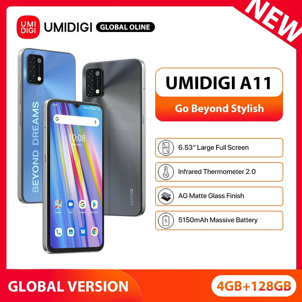 UMIDIGI A11 Android 11 NEW Global Version 128GB Smartphone Helio G25 6.53″ HD+16MP AI Triple Camera 5150mAh