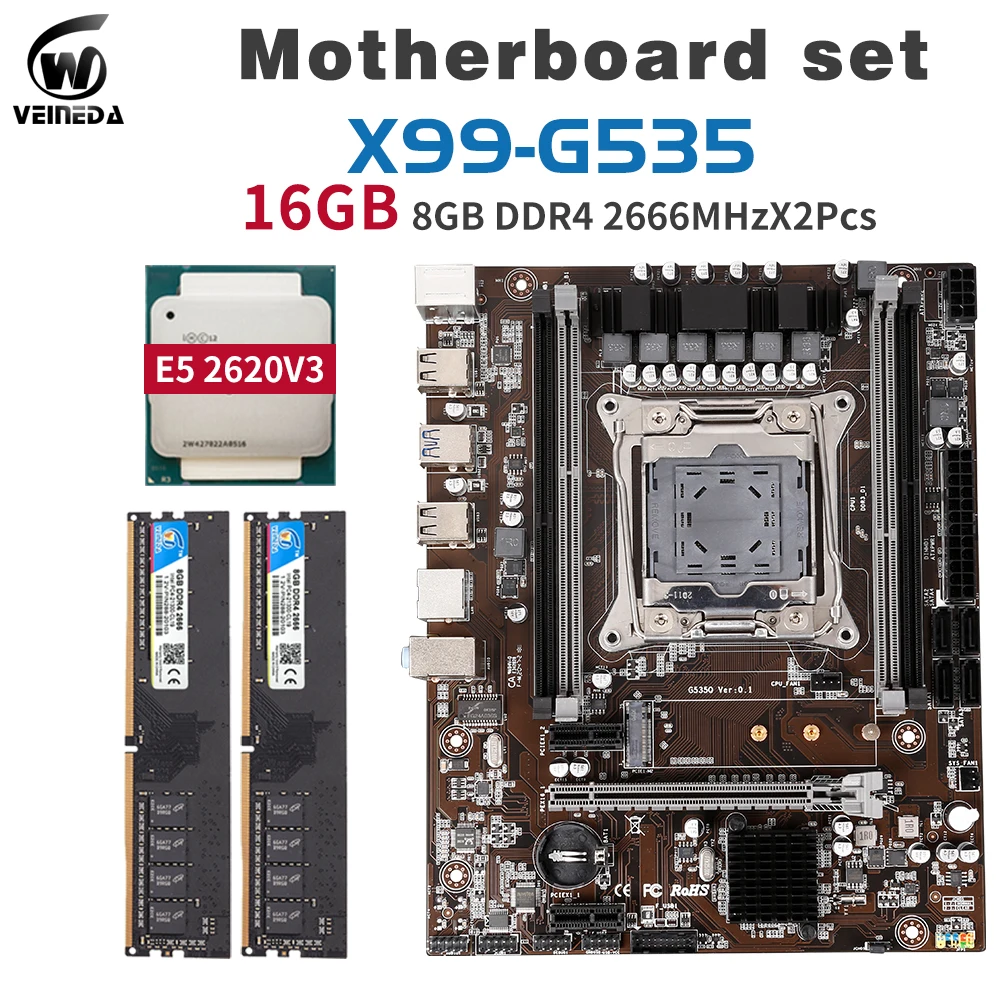 VEINEDA X99 D4 DDR4 Motherboard Set With XEON E5 2620 V3 LGA2011-3 CPU 2pcs X 8GB = 16GB 2666MHz DDR4 PC4 Memory