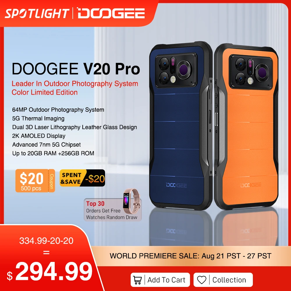 World Premiere DOOGEE V20 Pro Rugged Phone 6.43”2K AMOLED Display 12GB+256GB 1440*1080 Thermal Imaging Advanced 7nm 5G Chipset