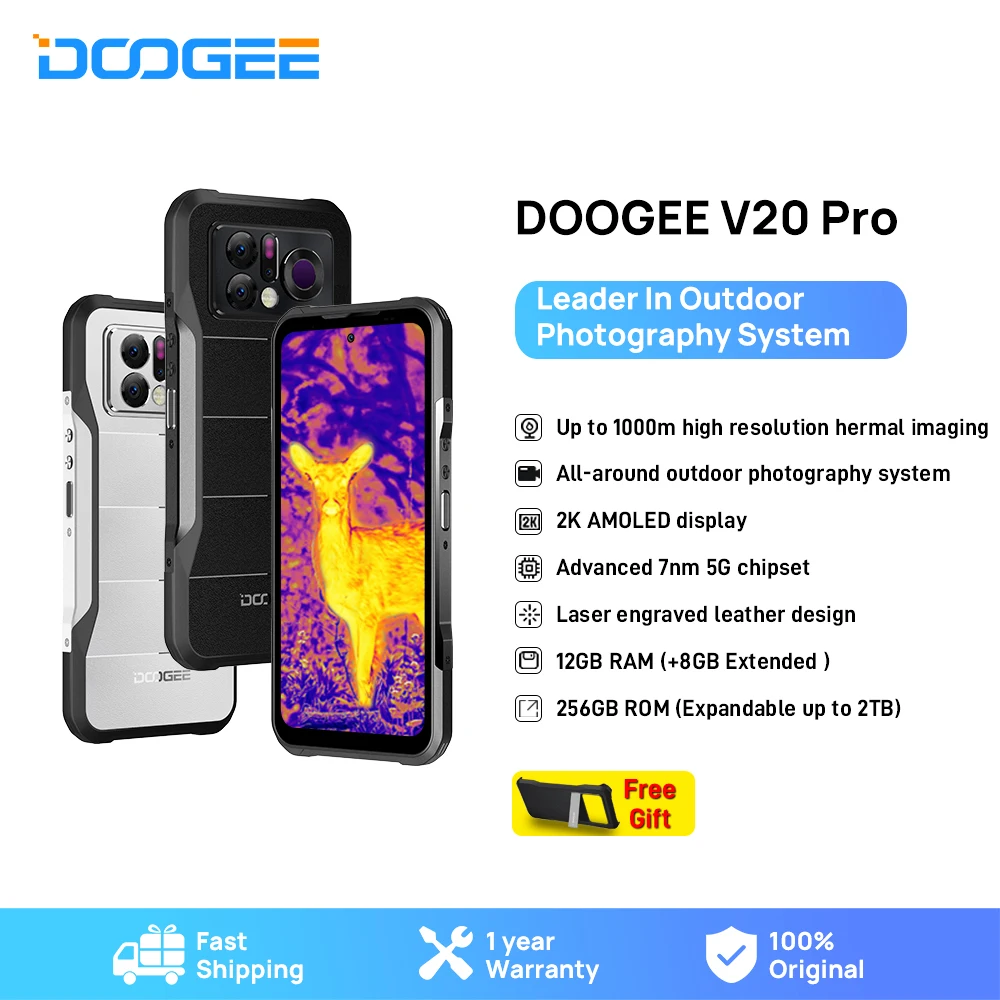 World Premiere DOOGEE V20 Pro Rugged Phone 12GB+256GB 6.43”2K AMOLED Display Cellphone 1440*1080 5G Thermal Imaging Resolution