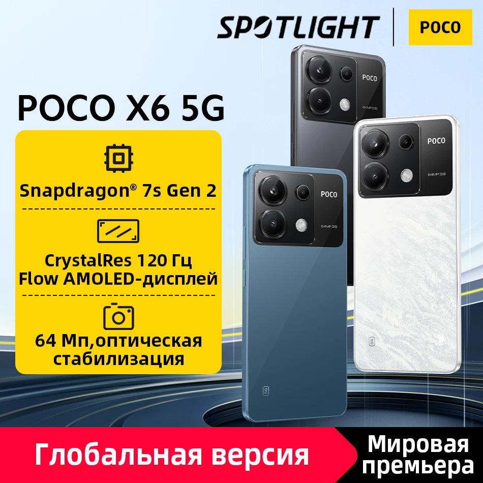 [World Premiere] POCO X6 5G Snapdragon 7s Gen 2 120Hz Flow AMOLED Display Smartphone 64MP Camera with OIS NFC 67W Charging