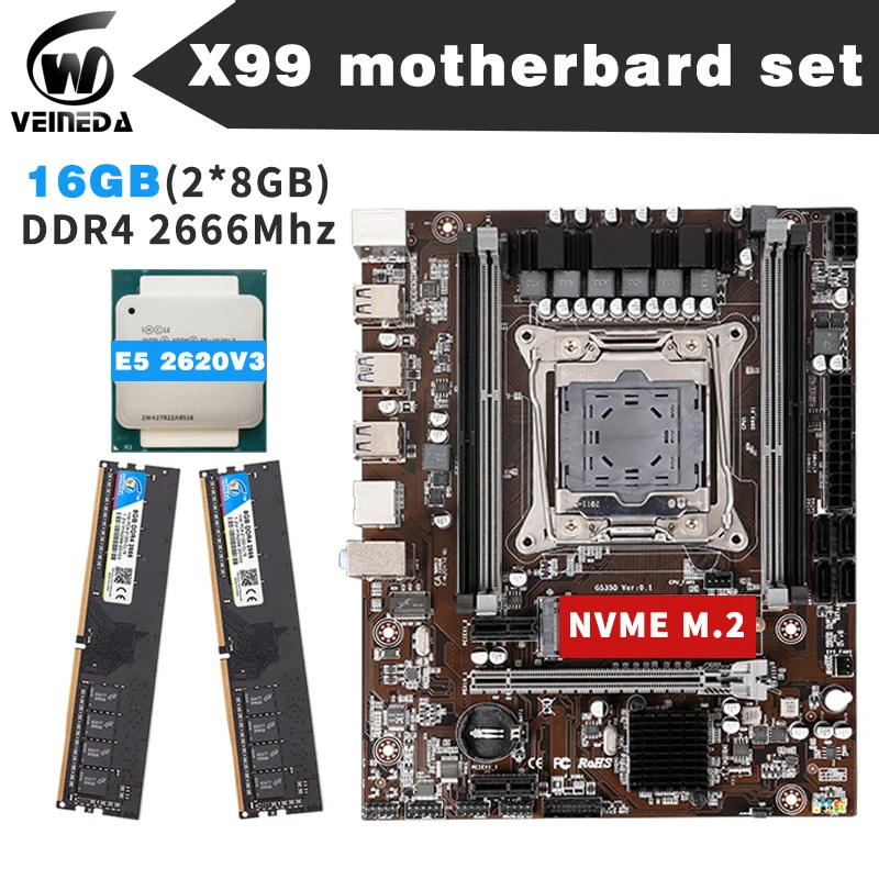 X99 Motherboard Set CPU XEON E5 2620 V3 lga 2011-3 X99 D4 DDR4 With 2pcs X 8GB = 16GB 2666MHz DDR4 PC4 Memory