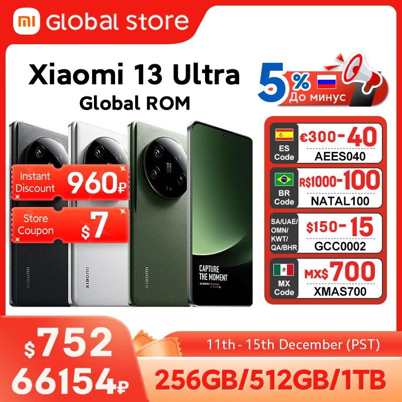 Xiaomi 13 Ultra Global Rom 256GB 512GB Snapdragon 8 Gen 2 Dual 5G 6.73″ Display 120Hz 5000mAh 50MP Camera