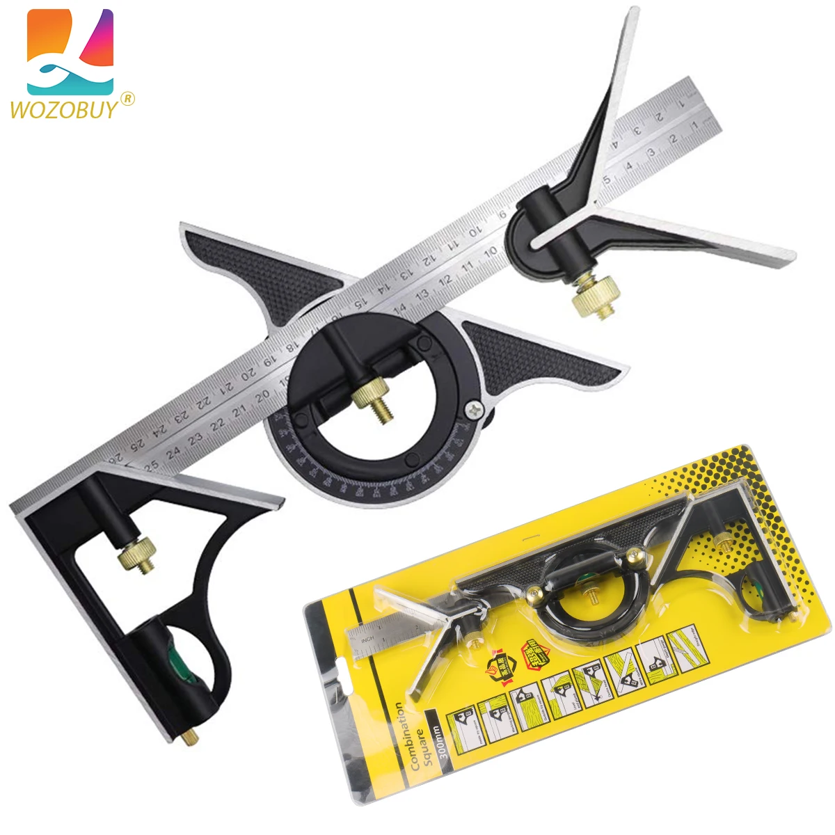 3 In 1 Combination Angle Ruler Set Engineer 300/600mm Adjustable Multi Combination Right Square Protractor Measuring Tool Set