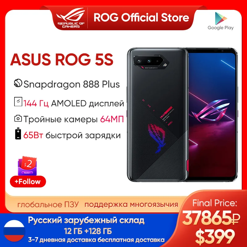 ASUS ROG 5S Global Rom Snapdragon 888 Plus 5G 6.78» 144Hz AMOLED 6000mAh 65W Fast charging ROG 5 S 64MP Cameras NFC