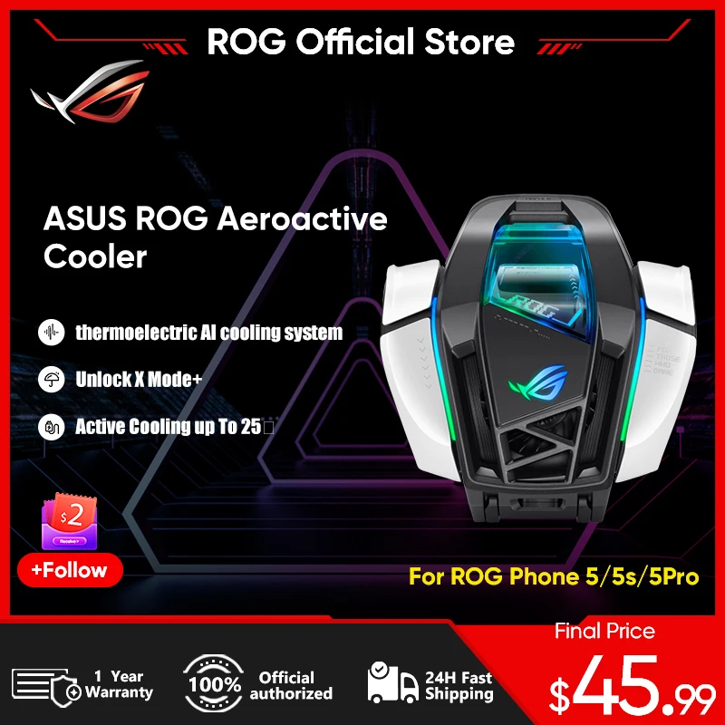 ASUS ROG AeroActive Cooler 6 Funcooler Cooling Fan Holder with LED Aura Lighting ROG 5/5s Gaming Phone Expansion Accessories