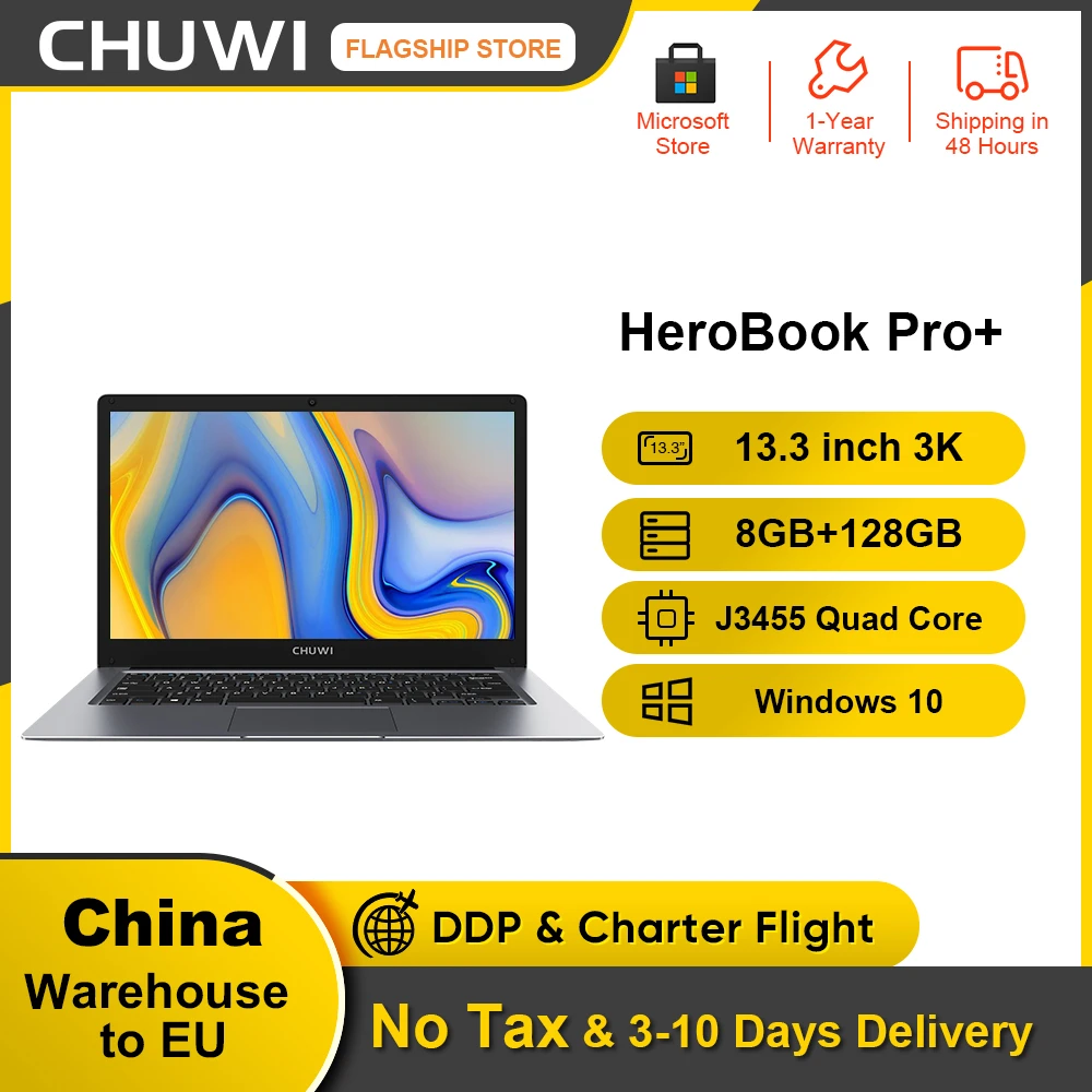 CHUWI HeroBook Pro+ 13.3 inch 3k screen 8GB RAM 128G ROM Laptop Intel Celeron J3455 Quad Core Windows 10 system computer BT5.0