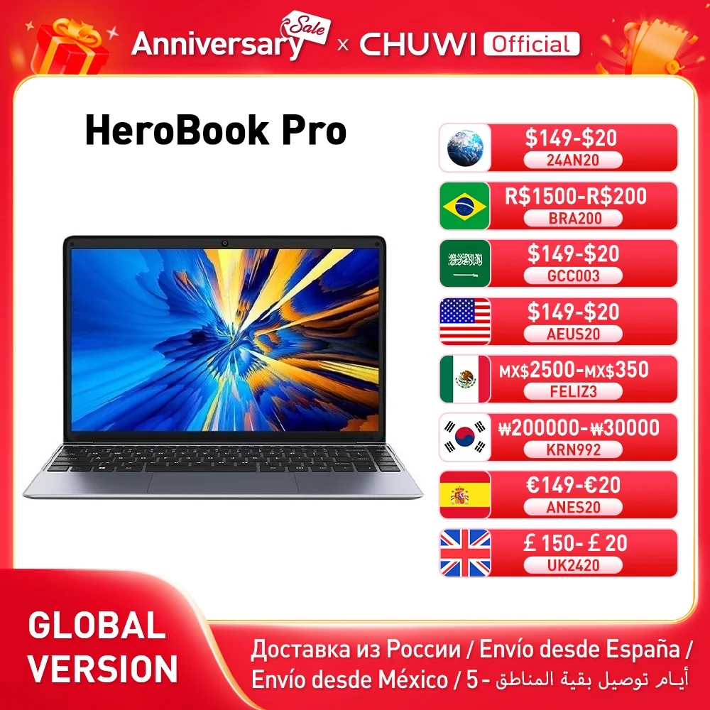 CHUWI HeroBook Pro 14.1″ 1920×1080 Resolution Intel Celeron N4020 Dual Core Windows 10 OS 8GB RAM 256GB SSD Laptop with Mini HD
