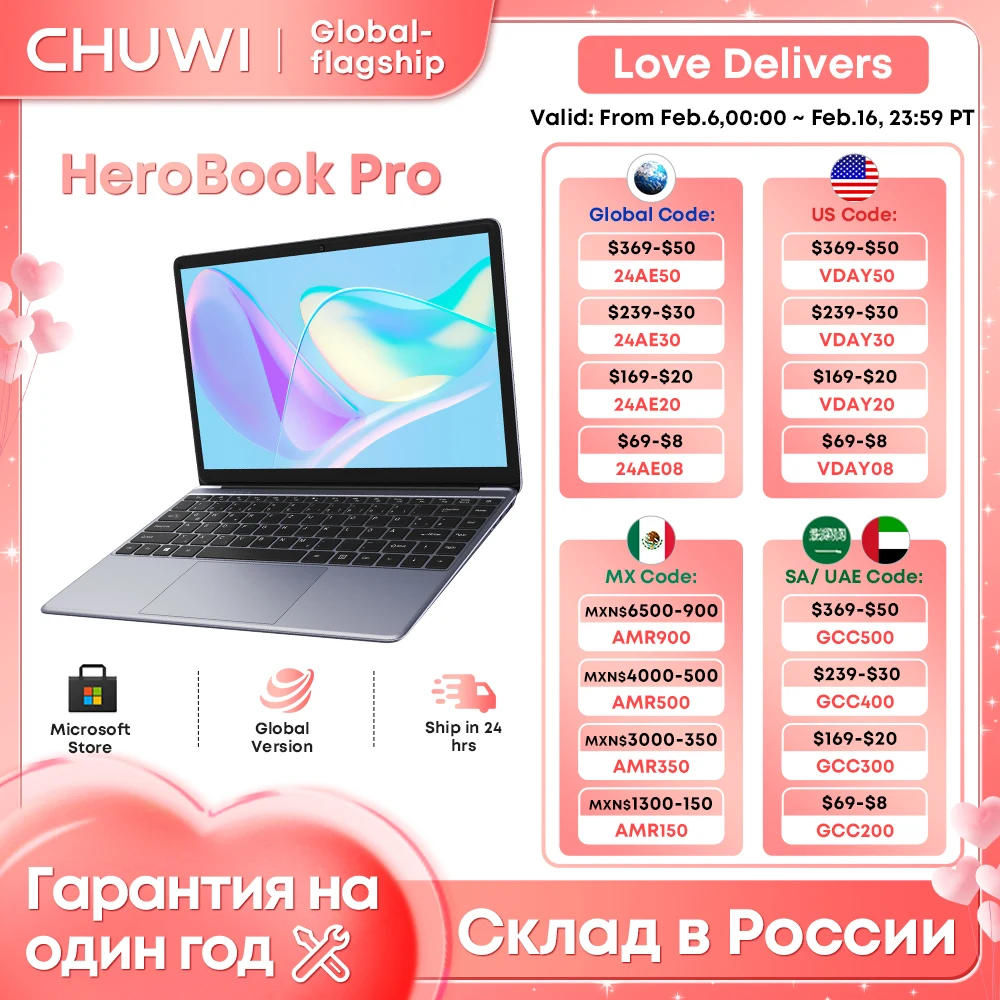 CHUWI HeroBook Pro Laptop 14.1 inch FHD Screen Intel Celeron N4020 Dual Core 8GB RAM 256GB ROM Windows 11 OS Mini HD NoteBook