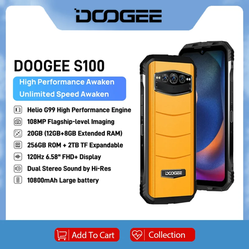 DOOGEE S100 6.58″ FHD 120Hz Display 108MP AI Triple Camera 12GB+256GB Helio G99 Octa Core 66W Fast Charge 10800mAh Battery