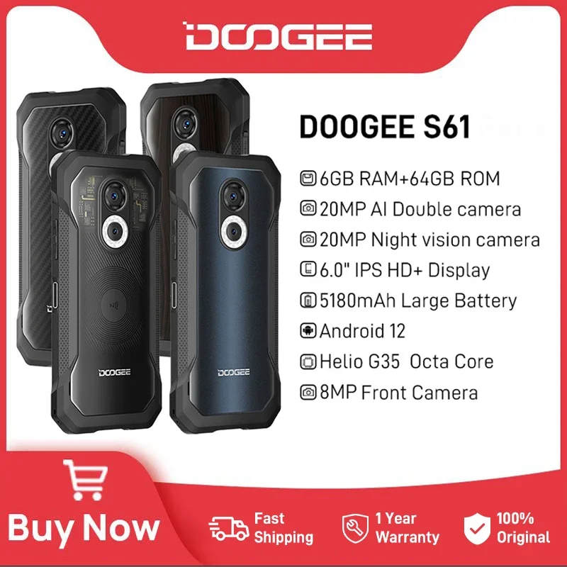 DOOGEE S61 Rugged Production 6.0″ 20MP Night Vision Camera 5180mAh Battery Android 12 Multiple Back Case Design
