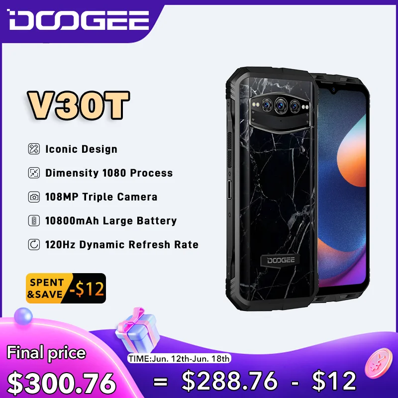 DOOGEE V30T 5G Rugged Phone Dimensity 1080 6nm 12+256GB Cellphone 6.58″ FHD 120Hz Display 108MP Camera 10800mAh Battery Phone
