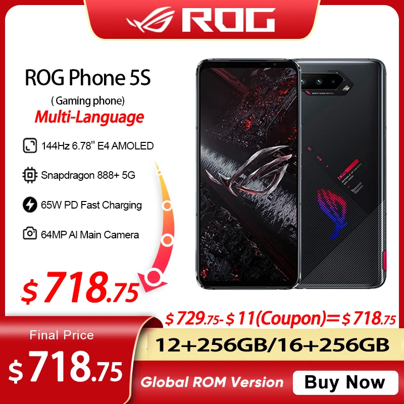 Global ROM ASUS ROG 5S 5G Gaming Smartphone 16GB RAM 256GB ROM Snapdragon 888 Plus 65W Fast Charging 6000mAh Battery NFC
