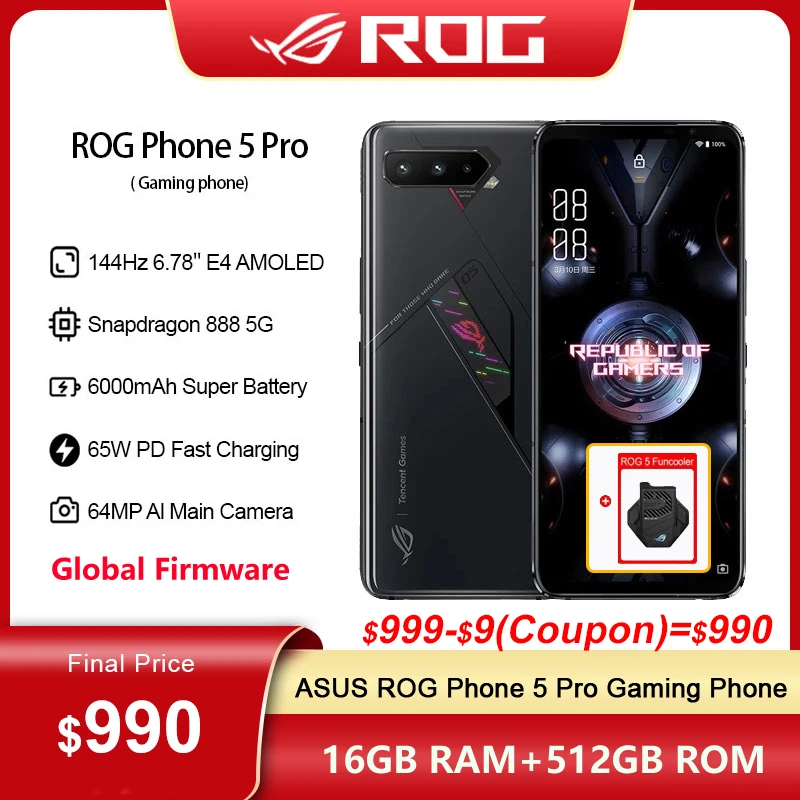Global ROM ASUS ROG Phone 5 Pro 5G Smartphone Snapdragon 888 6.78'' 144Hz AMOLED 6000mAh 65W Fast charging Gaming Phone NFC