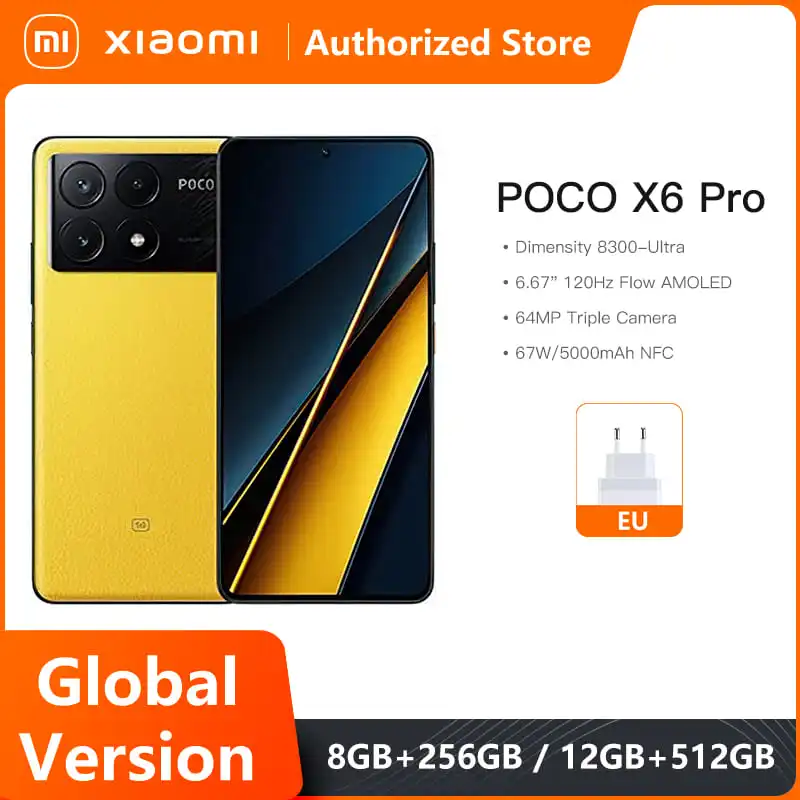 Global Version POCO X6 Pro 5G 256GB/512GB Dimensity 8300-Ultra 67W 64MP Triple Camera 6.67″ 1.5K DotDisplay 120Hz 5000mAh NFC