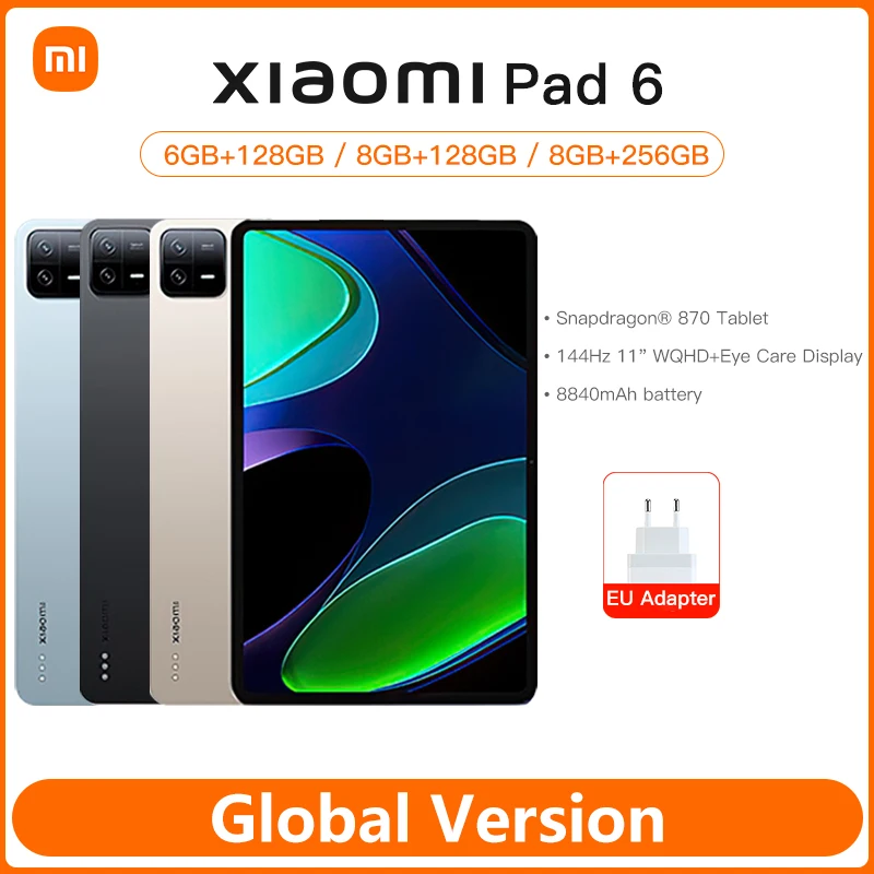 Global Version Xiaomi Pad 6 Snapdragon® 870 Tablet 33W Fast Charging 13MP Camera 8840mAh 144Hz 11» WQHD+Eye Care Display