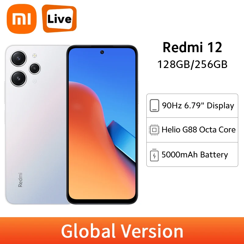 Global Version Xiaomi Redmi 12 MTK Helio G88 Core 128GB/256GB 50MP Triple Camera 90Hz FHD+ Display 5000mAh 18W Fast Charging