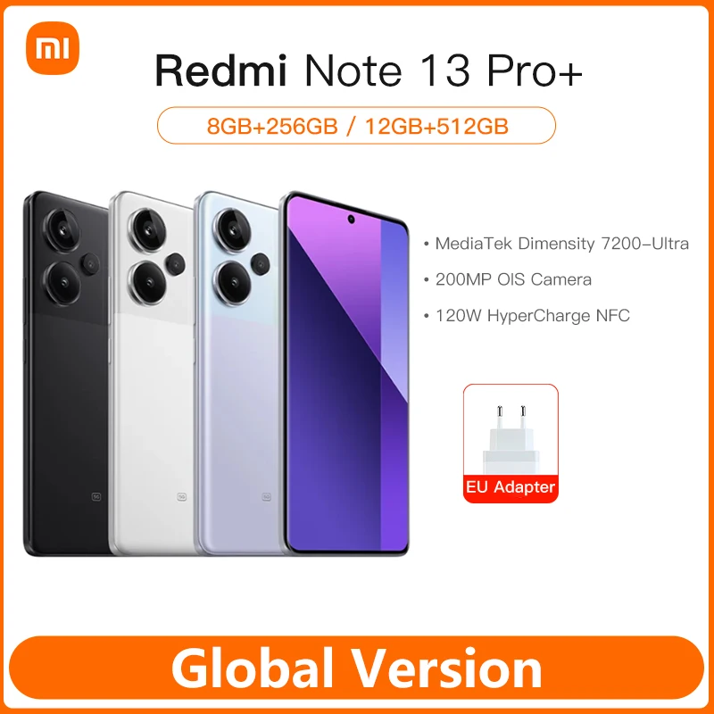 Global Version Xiaomi Redmi Note 13 Pro Plus 5G MediaTek Dimensity 7200Ultra 200MP OIS Camera 120Hz 1.5K Curved Display IP68 NFC