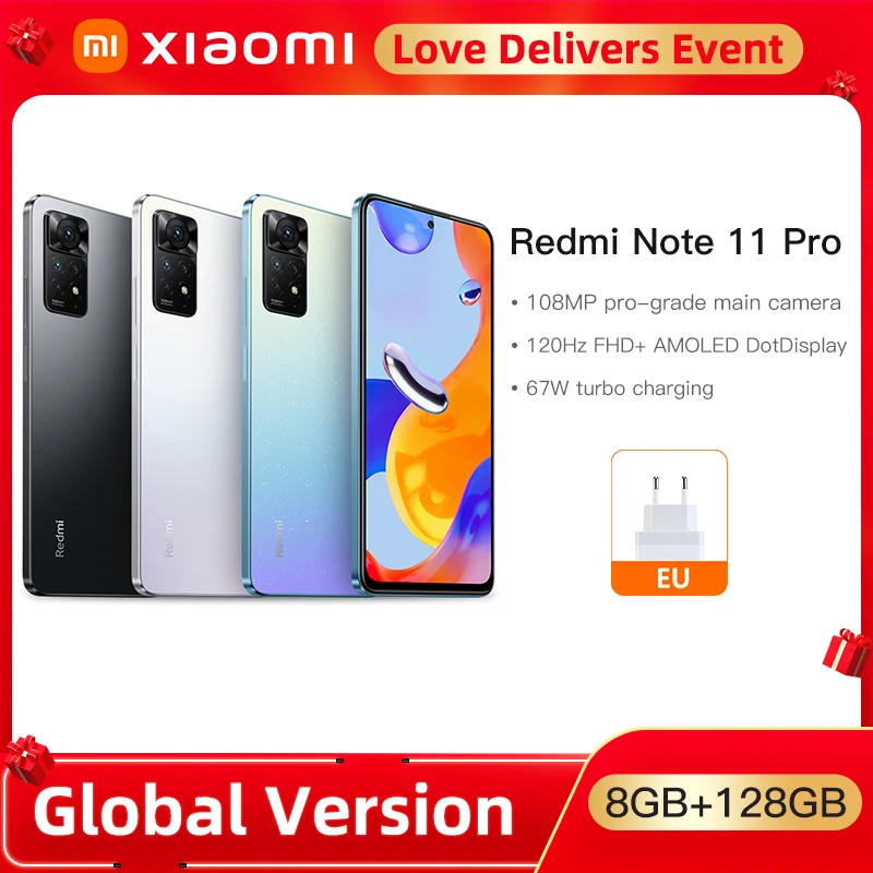 Global Version Xiaomi Redmi Note 11 Pro 64GB/128GB Smartphone Octa Core MTK Helio G96 108MP 120Hz AMOLED 67W Fast Charge