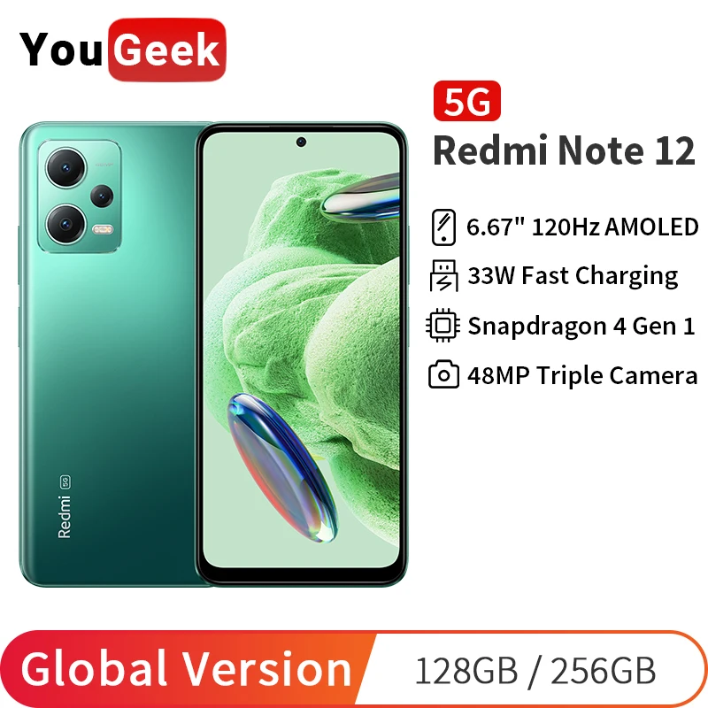 Global Version Xiaomi Redmi Note 12 5G NFC 120Hz AMOLED Snapdragon 4 Gen 1 Octa Core 33W Fast Charging 48MP Camera