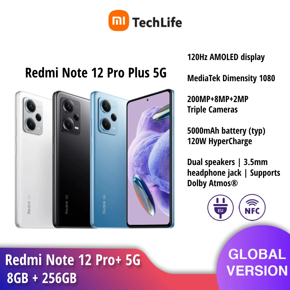 Global Version Xiaomi Redmi Note 12 Pro Plus 5G – MediaTek Dimensity 1080 | 6.67″ AMOLED | 200MP Camera | 120W Fast Charging