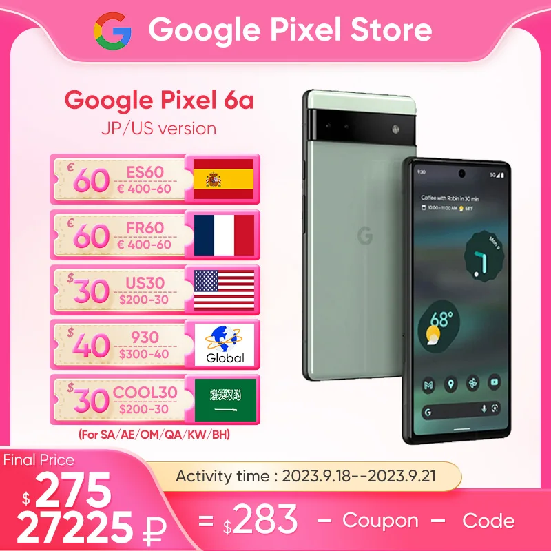 Google Pixel 6A 5G Smartphone 6GB RAM 128GB ROM 6.1″OLED Display Octa Core NFC US/Japan Version Full Screen Android Mobile Phone