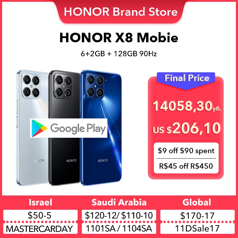HONOR X8 Mobile Phone 6.7 inch 128GB Android 11 Smartphone 6nm Snapdragon 680 90Hz 22.5W Fast Charge Cell Phone 64MP Quad Camera