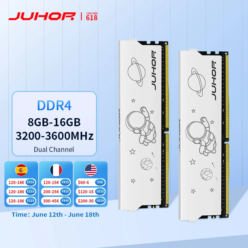 JUHOR Desktop Memory DDR4 8GB 16GB 3200MHz 3600MHz 16GBX2 8GBX2 New Dimm Memoria Rams