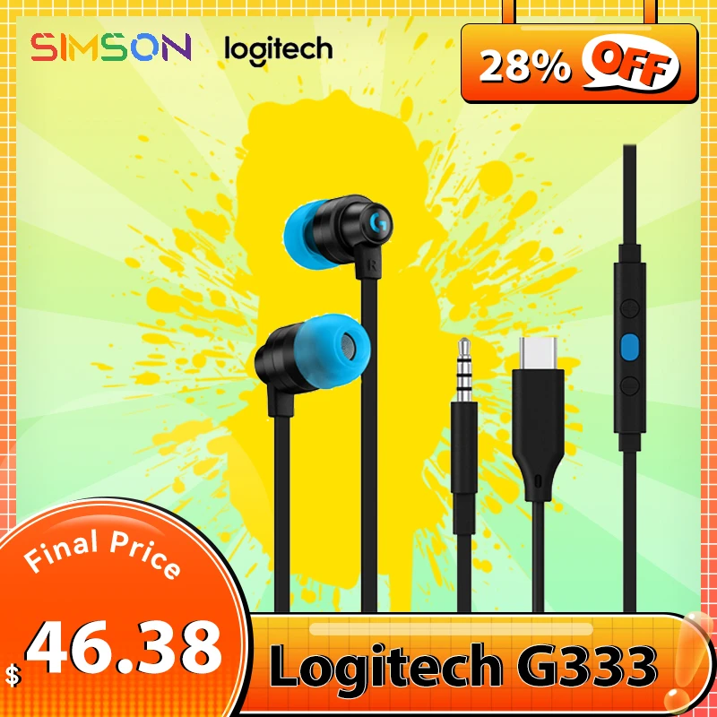 Logitech G333 3.5mm In-Ear Wired Gaming Headphones with Microphone USB Aluminum Alloy for Laptop PC Gaming LOL Earphone Headset