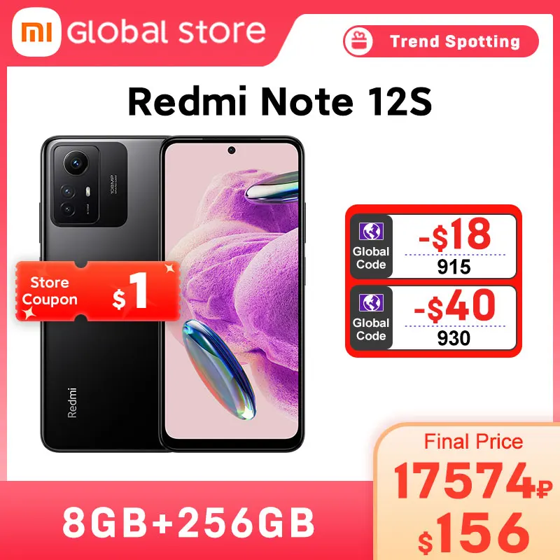 New Global Version Xiaomi Redmi Note 12S 8GB RAM 256GB ROM 6.43″ AMOLED DotDisplay 108MP Camera MTK Helio G96 5000mAh 90Hz