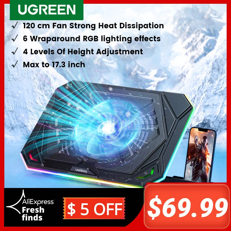 ?New-in Sale?UGREEN Laptop Cooling Pad With 20cm Cooling Fan Aluminum Laptop Cooler For 17.3 inch Gaming RGB Adjustable Cooler