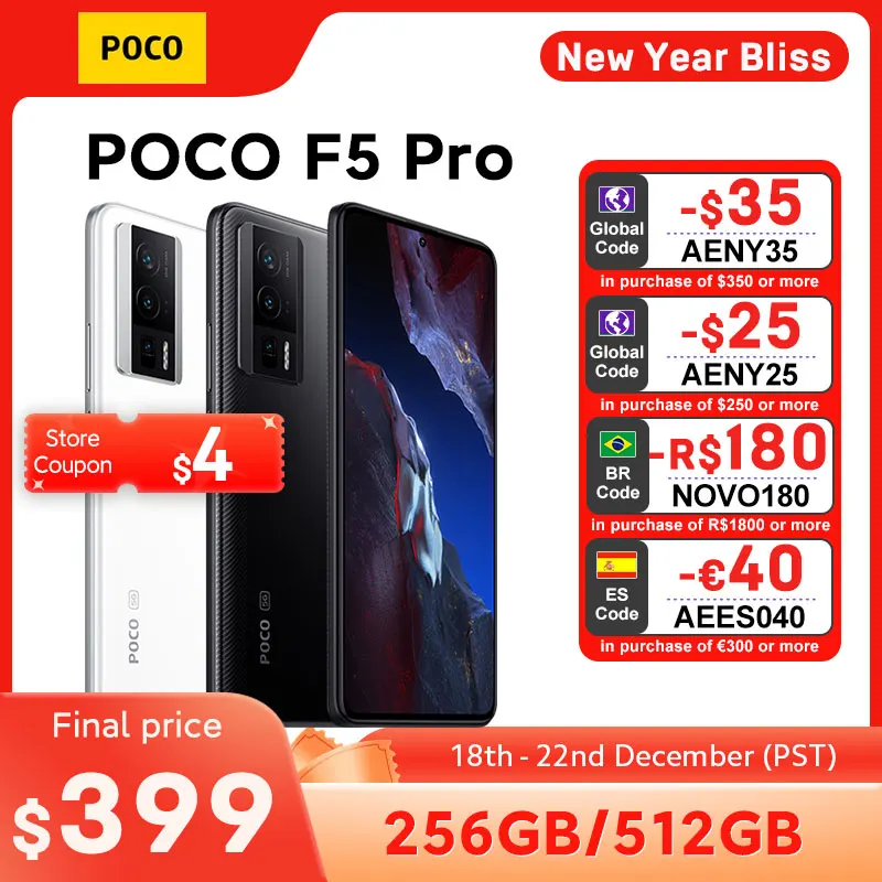 New POCO F5 Pro 5G Global Version 256GB/512GB Snapdragon® 8+ Gen 1 6.67″ WQHD+120Hz AMOLED DotDisplay 64MP Camera NFC
