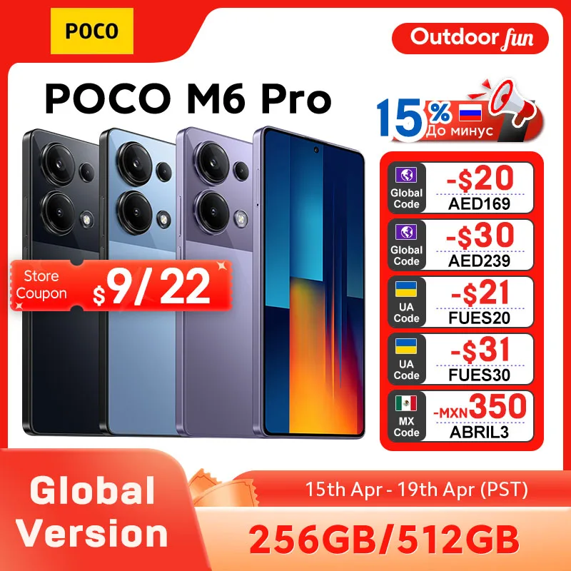 New POCO M6 Pro Global Version Smartphone NFC 256GB/512GB Helio G99 Ultra 64MP Camera with OIS 6.67» 120Hz Flow AMOLED 67W