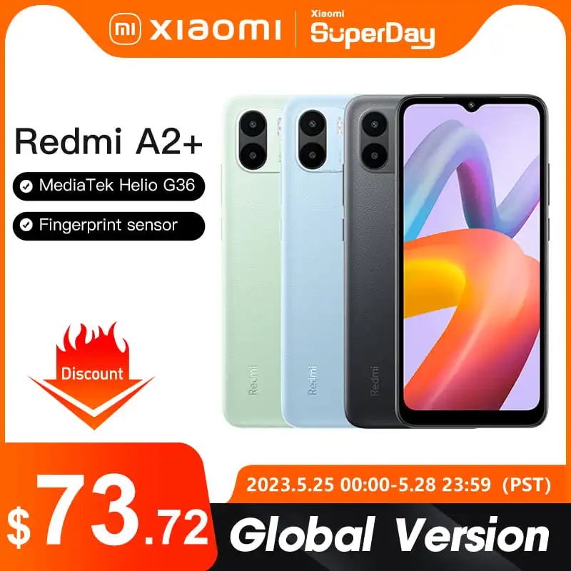New Xiaomi Redmi A2+ Global Version Cellphone A2 Plus MTK Helio G36 Octa Core 5000mAh Battery 8MP AI Dual Camera Fingerprint ID