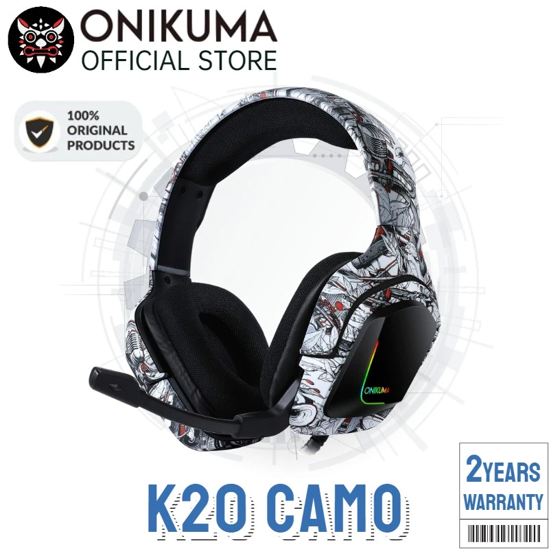 Onikuma K20 White Camo Gaming Headset with Mic Stereo Surround Sound with Noise Cancelling Mic with Mute & Volume Control, Light